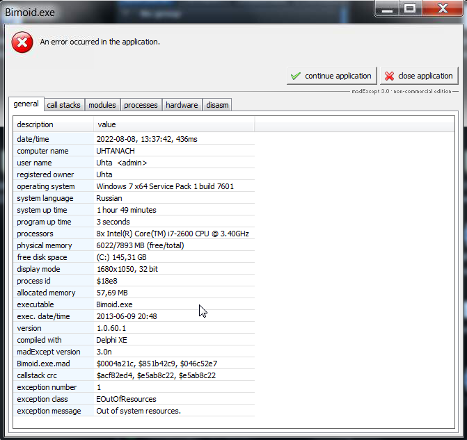 Ошибка при первом обращении к чату. "Продолжить" - снова ошибка. Скрин приложен